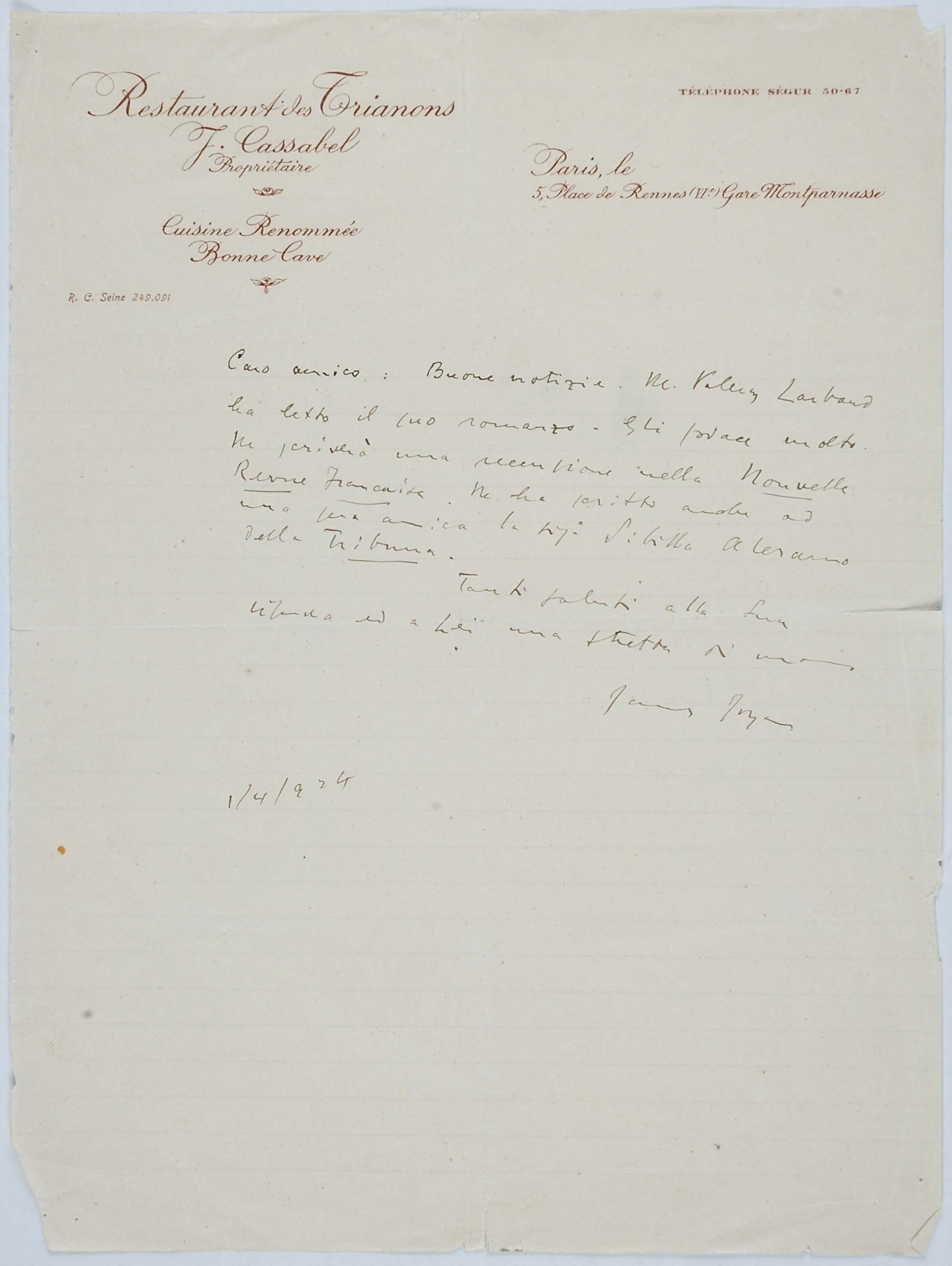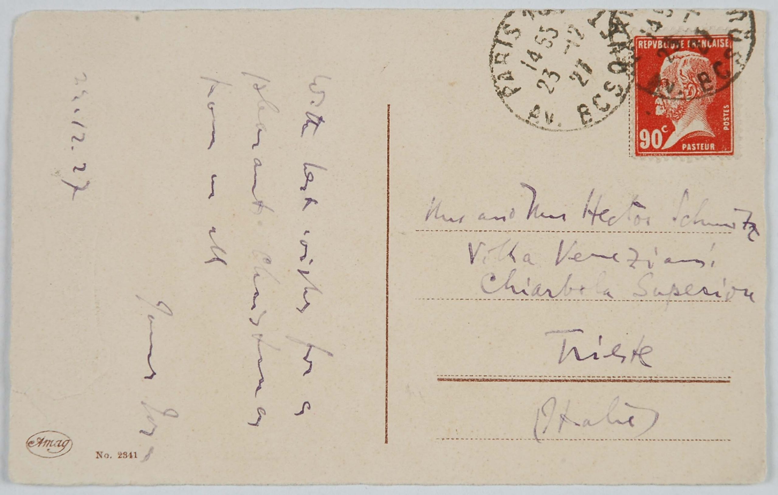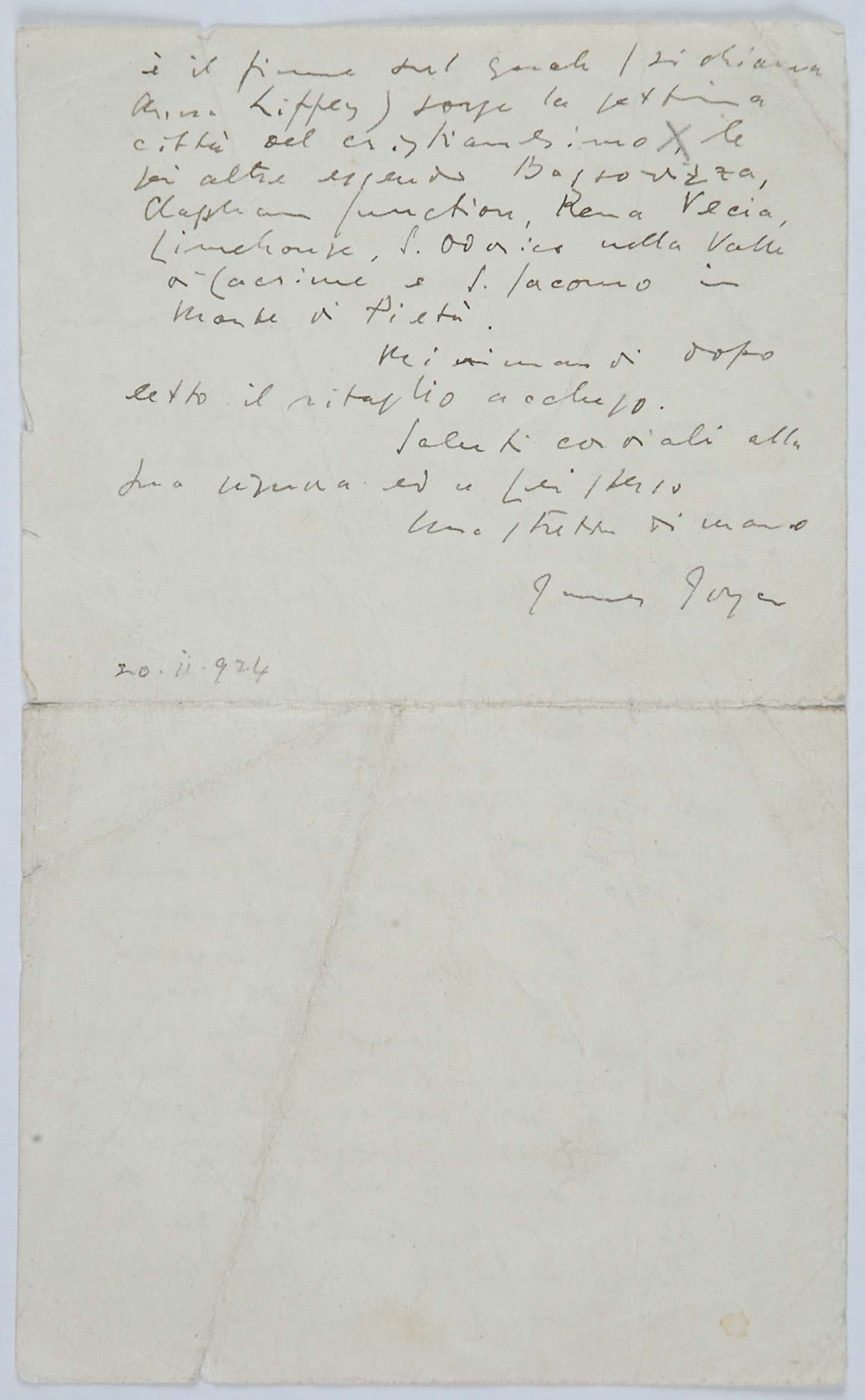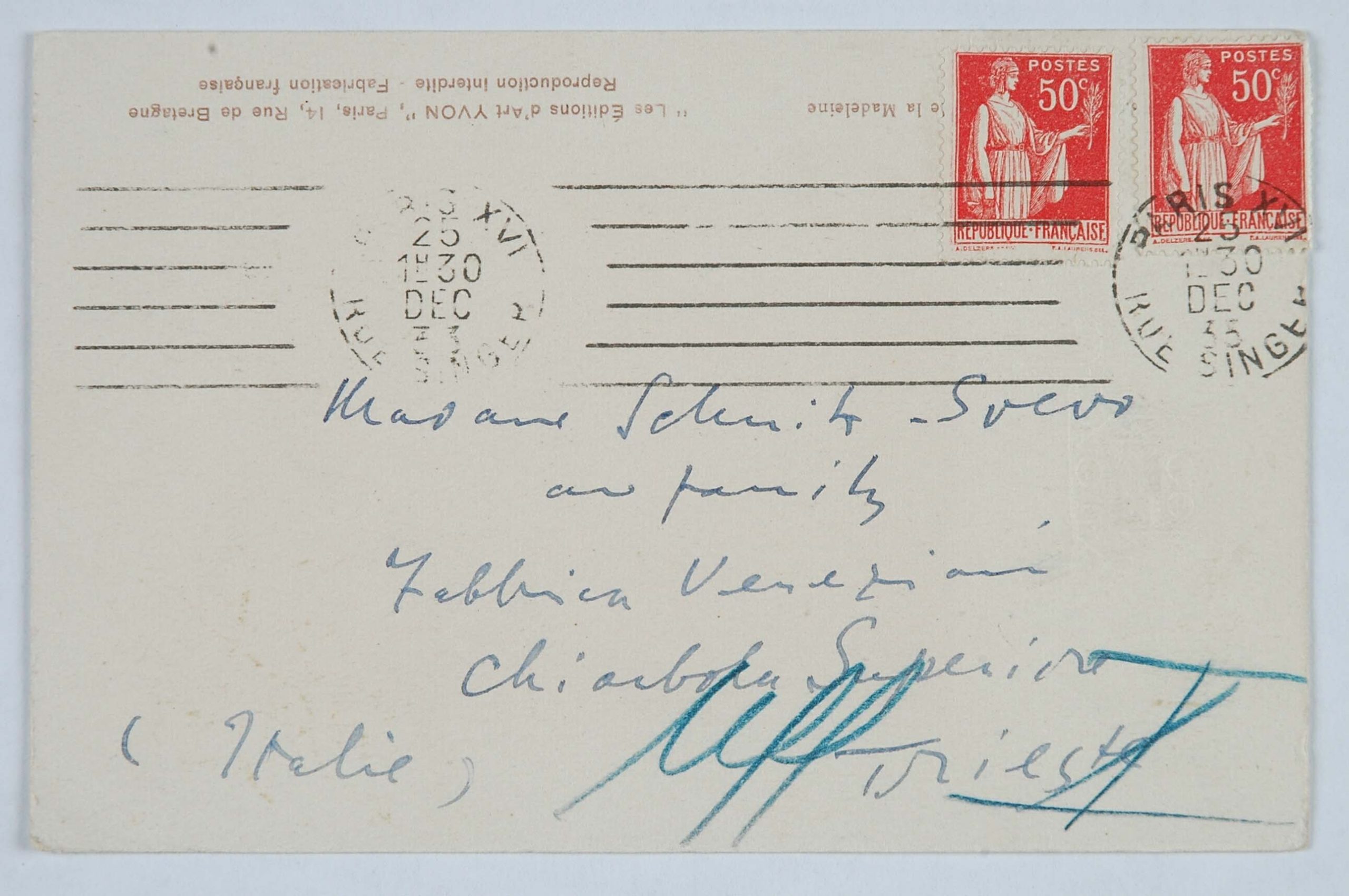 Un grande amico di papà fu James Joyce. Mio padre, che si recava spesso a Londra per curare da vicino gli interessi della filiale inglese della ditta Veneziani, decise di studiare bene l’inglese e di prendere una serie di lezioni da Joyce, allora giovanissimo professore alla Berlitz School di Trieste (eravamo, credo, nel 1907). Joyce cominciò a venire in villa Veneziani e a dar lezioni a mio padre e a mia madre. Durante una delle prime lezioni disse loro che era uno scrittore, che aveva pubblicato una raccolta di poesie, Chamber Music (1907) e che aveva composto un romanzo, A Portrait of the Artist as a Young Man (o Dedalus) e i racconti Dubliners. I miei genitori ne furono subito entusiasti: mamma si recò in giardino e portò a Joyce un mazzo di rose. Allora papà timidamente gli disse: ‘Sa, anch’io ho scritto; ma ho scritto due libri che non sono stati riconosciuti da nessuno’. Così ebbe inizio l’amicizia tra Joyce e mio padre, che durò, attraverso frequenti contatti personali, sino al 1915, allorché Joyce, come cittadino inglese, dovette lasciare Trieste, dato lo stato di guerra fra l’Austria e l’Inghilterra. Egli si recò dapprima in Svizzera, a Zurigo, con la moglie Dora Barnacle e i due figli, e quindi, nel ’20, a Parigi. Ma tale amicizia durò, per così dire, a distanza, anche negli anni successivi alla prima guerra mondiale.