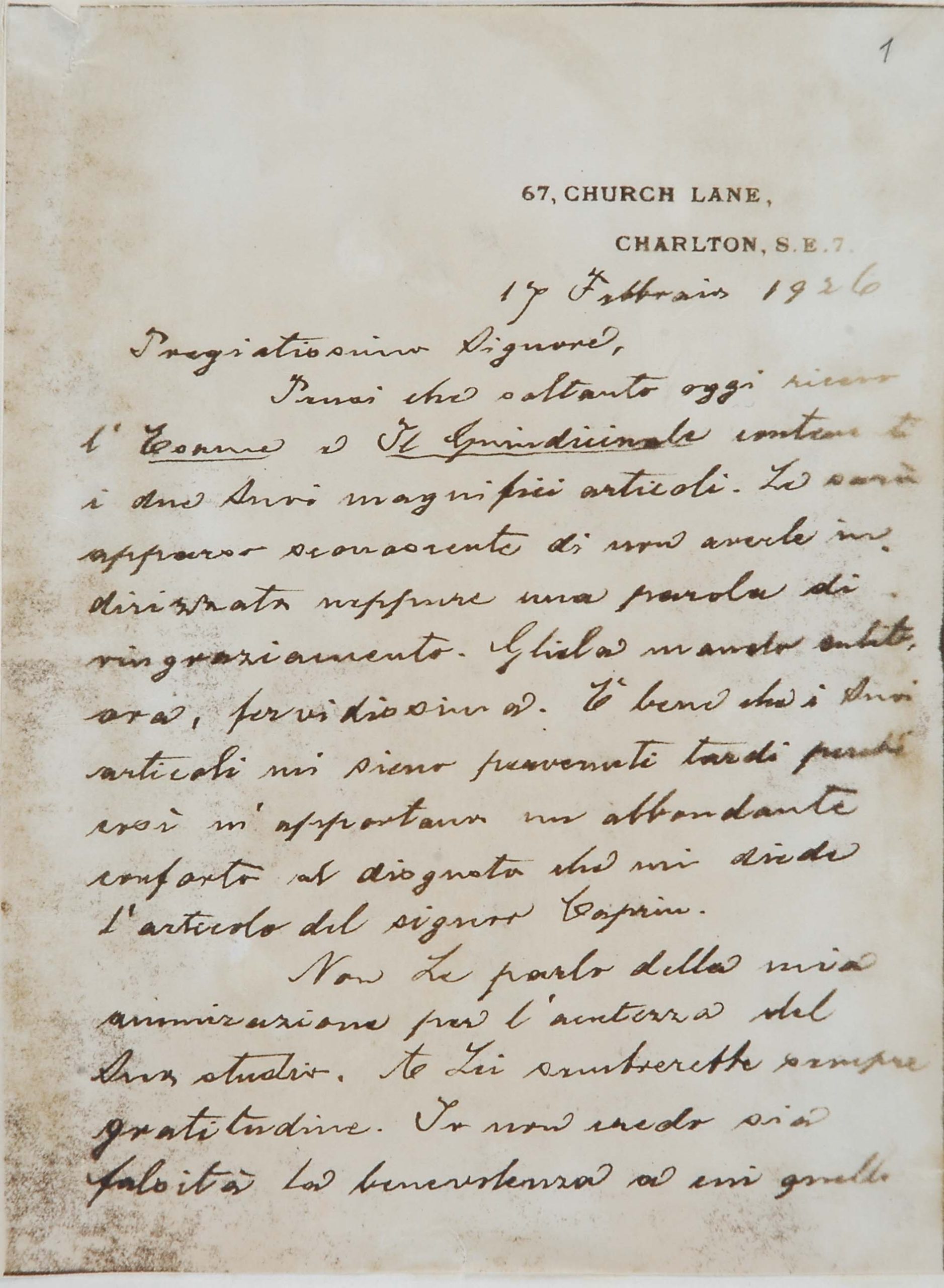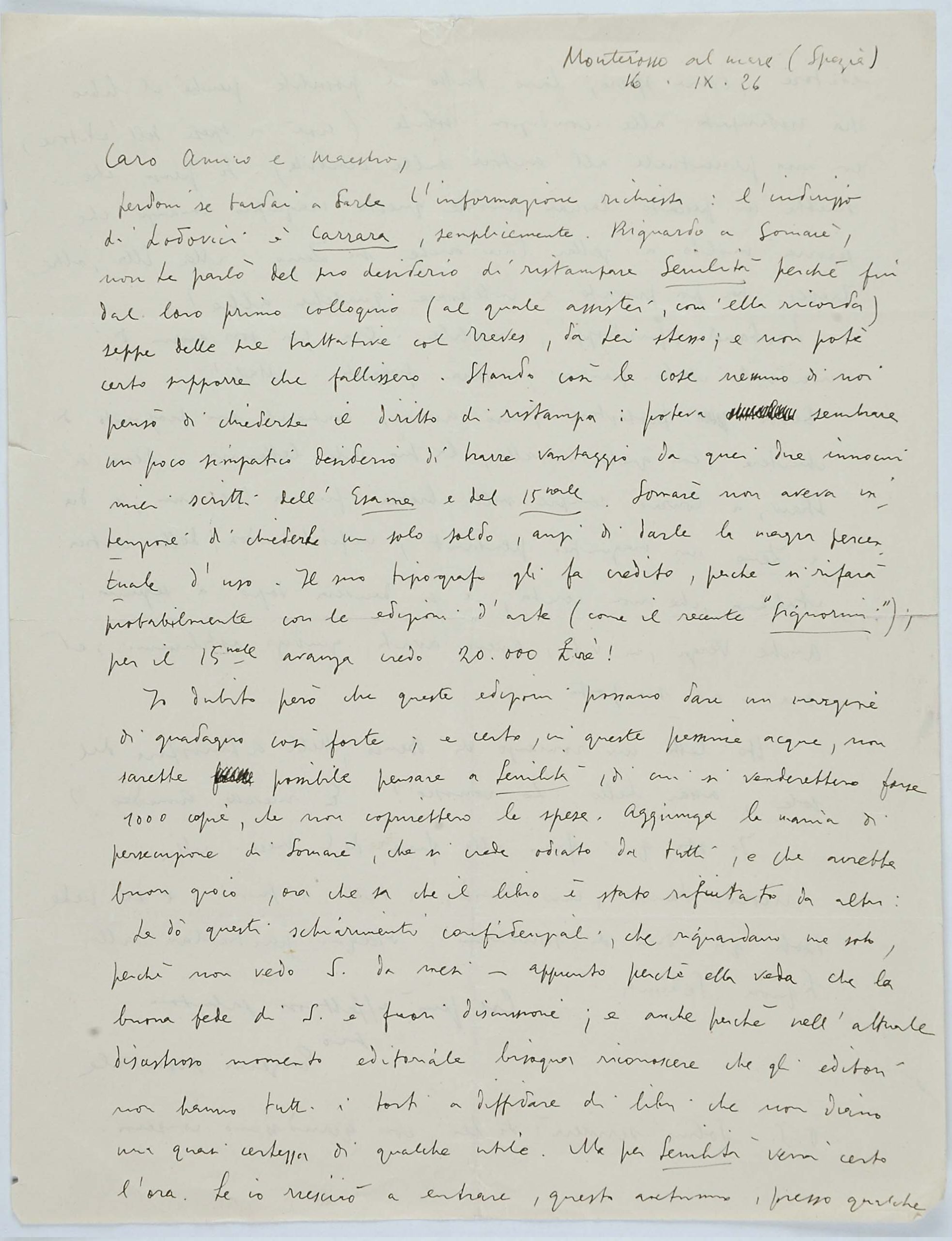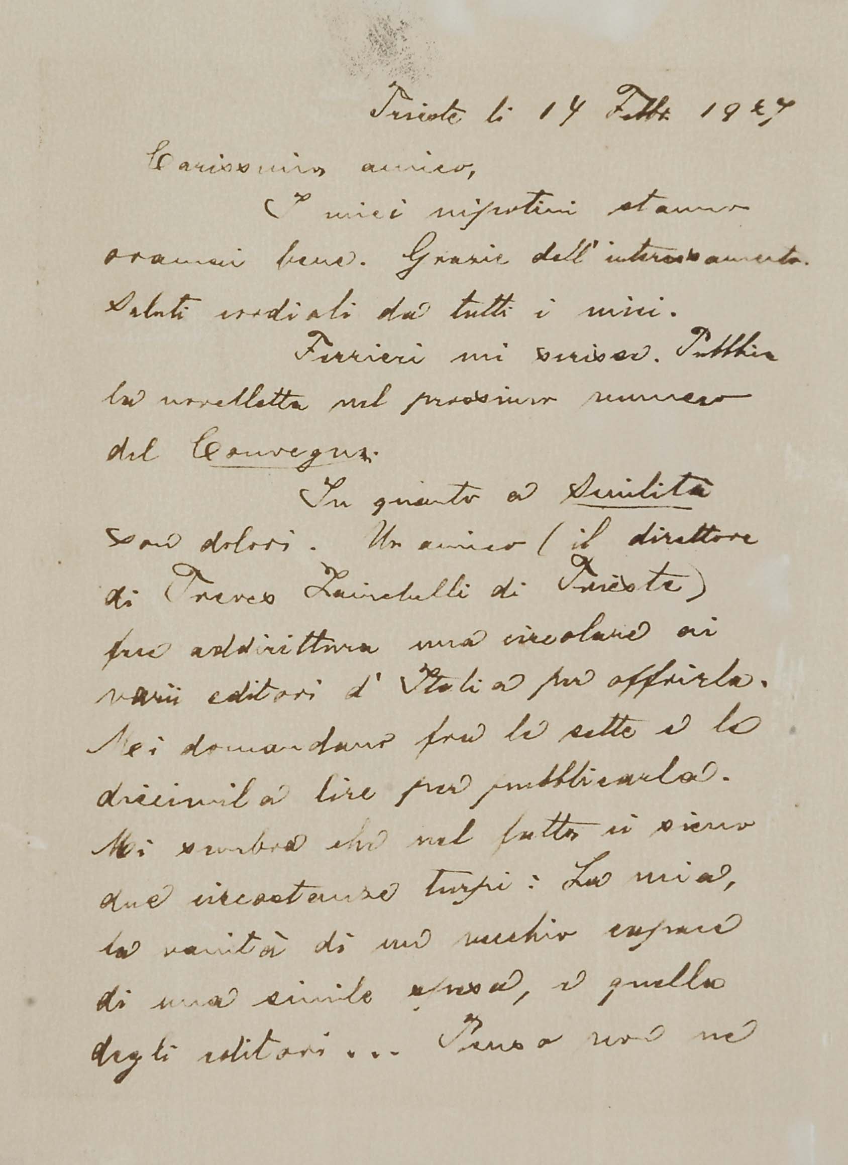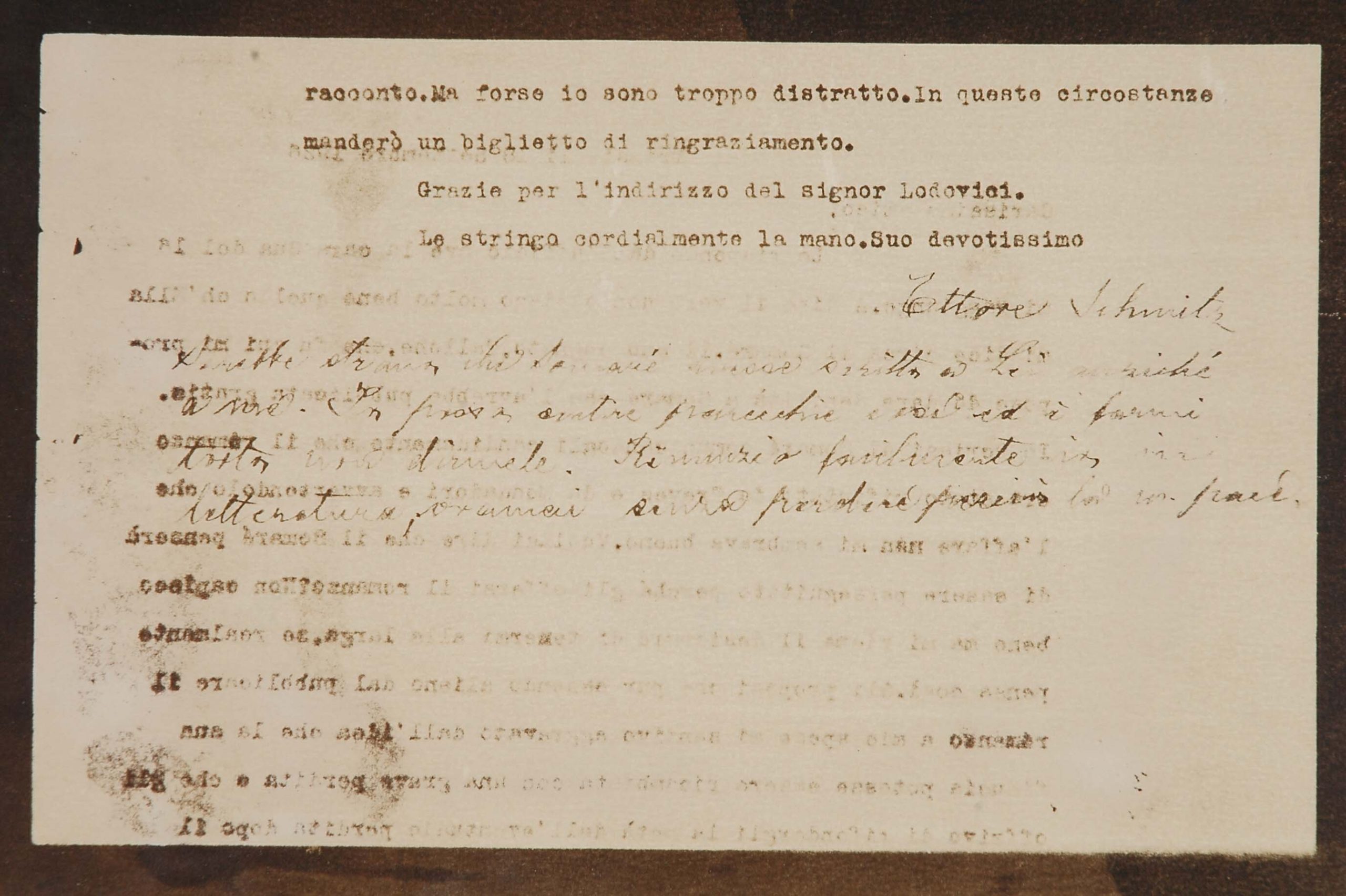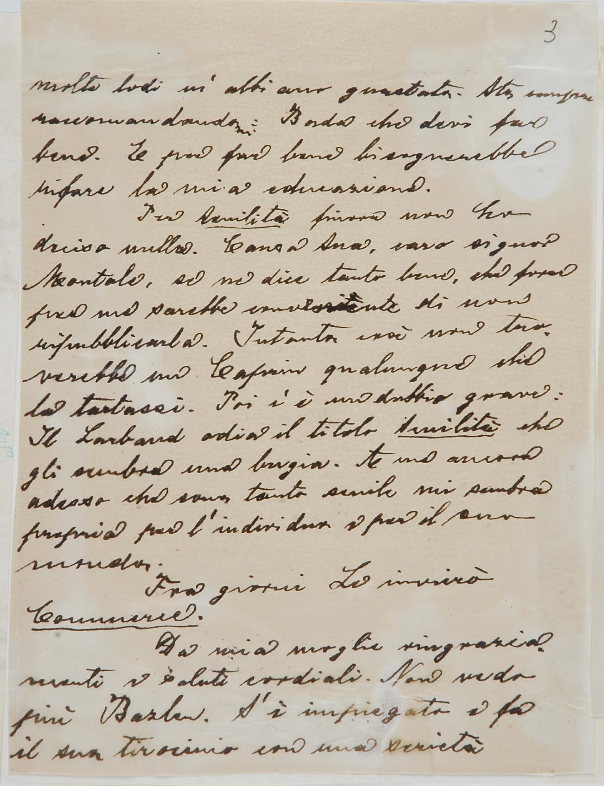 Il faldone con la segnatura archivistica Museo Sveviano FS Corr. A 76 contiene il carteggio tra Italo Svevo e Eugenio Montale, l’artefice nel novembre-dicembre del 1925 dell’Omaggio a Italo Svevo pubblicato nella rivista L’esame, la scintilla che, con due mesi di anticipo sulla critica francese, innesca il “caso Svevo” in Italia e in Europa.